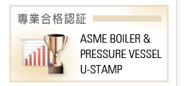“ASME BOILER & PRESSURE VESSEL U-STAMP”認(rèn)證,2024年增加 S-STAMP 認(rèn)証。 |